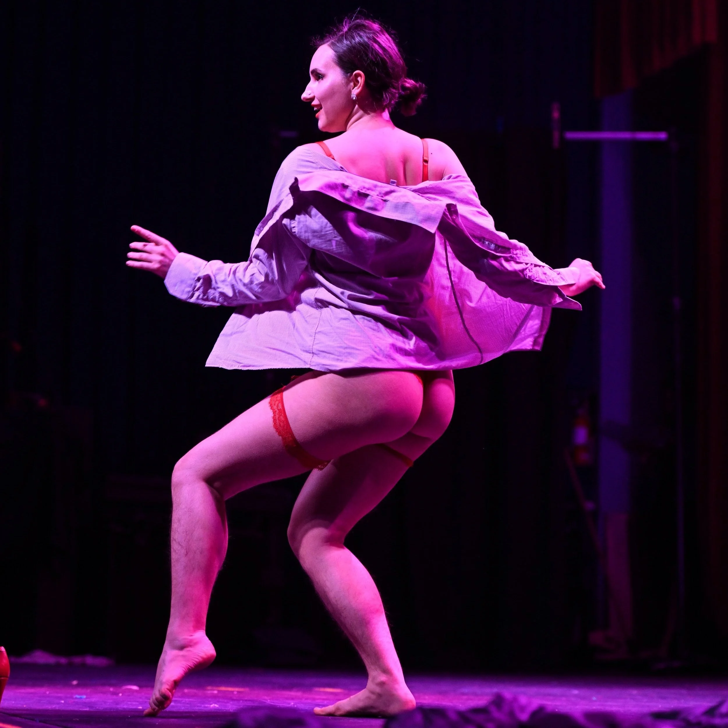 Burlesque: various teachers and programs, including with the Vancouver Burlesque Company, 2019 - current. My in-person solo debut was in December 2021.